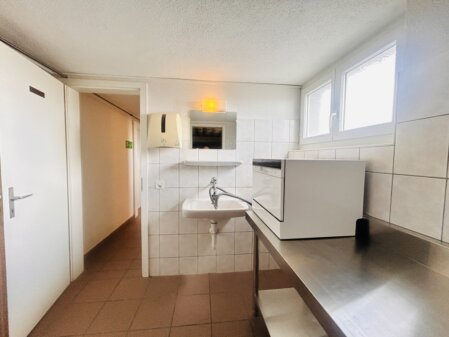 Ausserdem verfügt das Objekt über Lagerräume im Untergeschoss und WC-Anlage mit Toilette und Pissoirs. Direkt nebenan ist eine Tankstelle mit Shop.